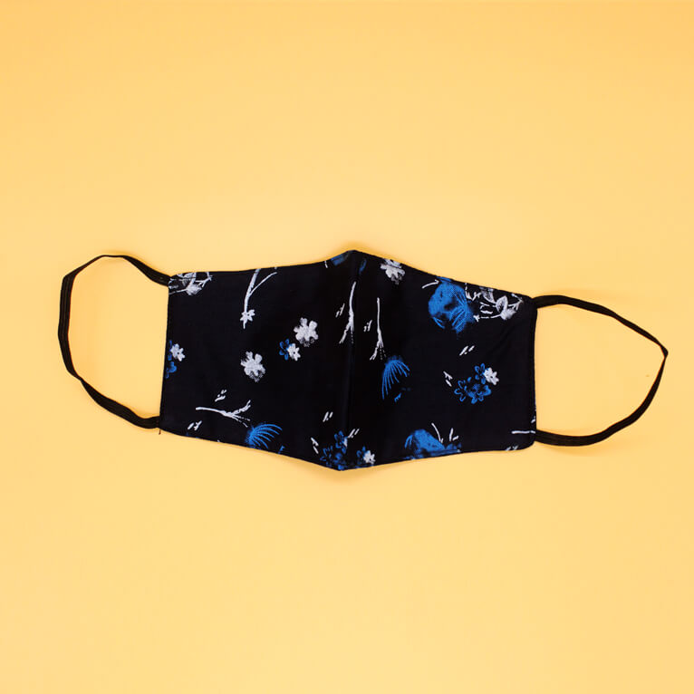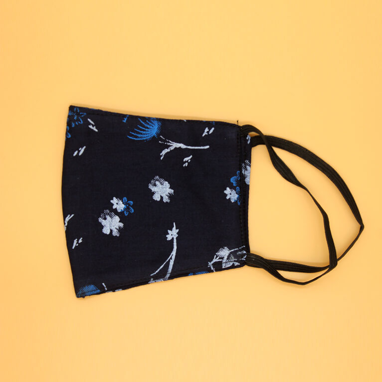 Attractive Floral Printed on Nave Blue Cotton Mask