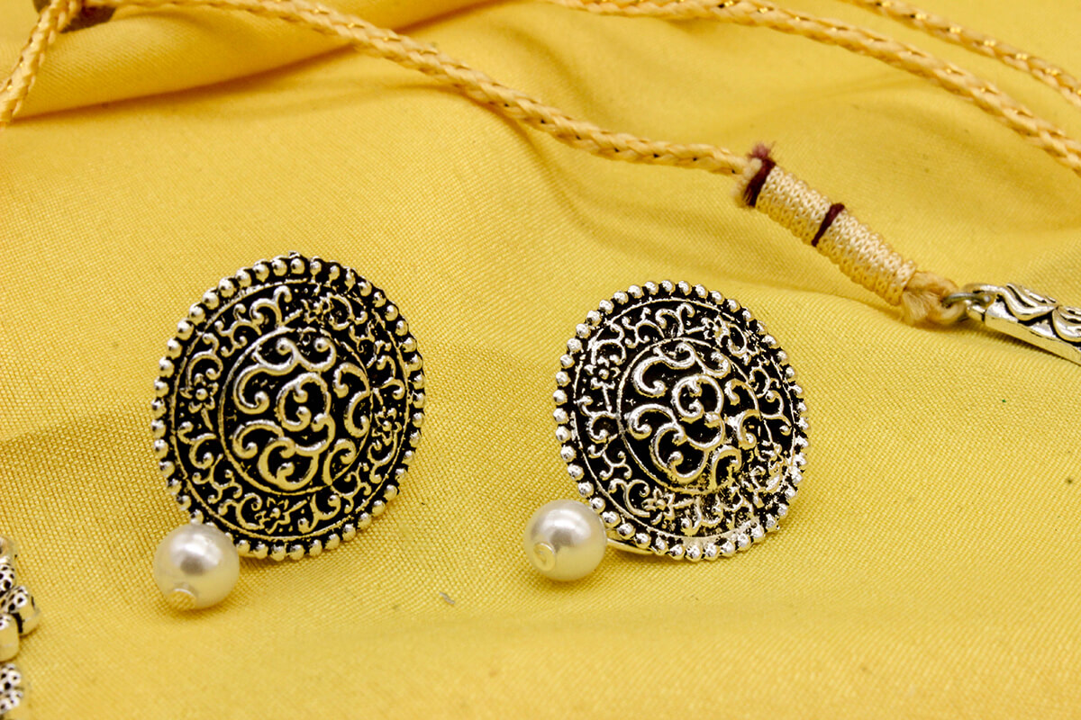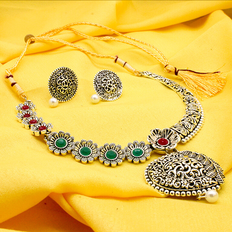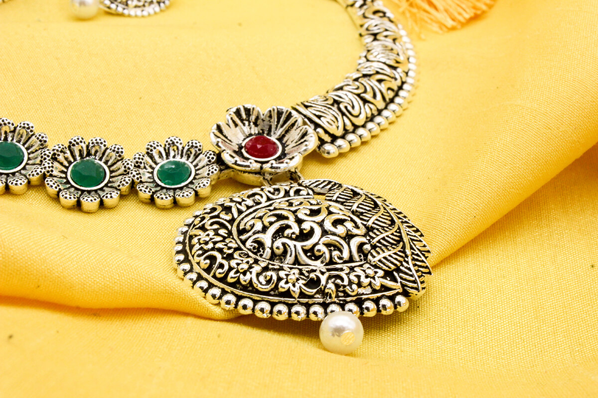 Beautiful German Silver Neck Piece Set With Matching Earrings