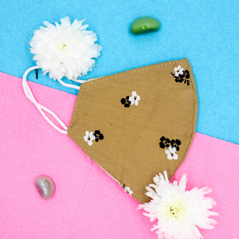 • Beautiful small black & white flower print on khaki color cotton mask.