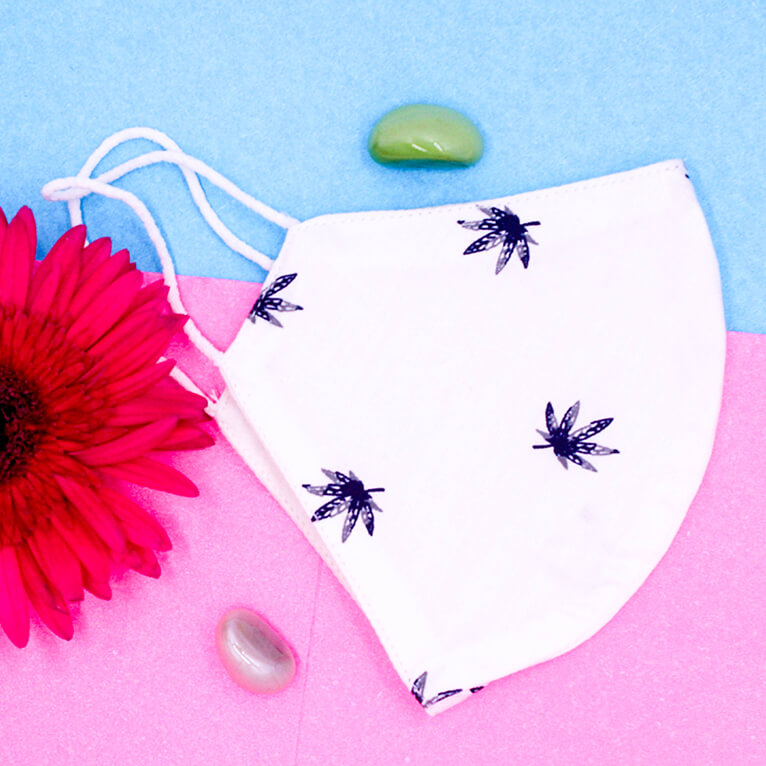 • Beautiful Chinar leaf print on snow white base mask.