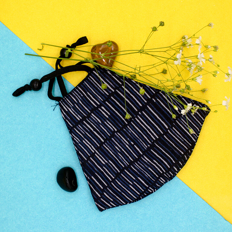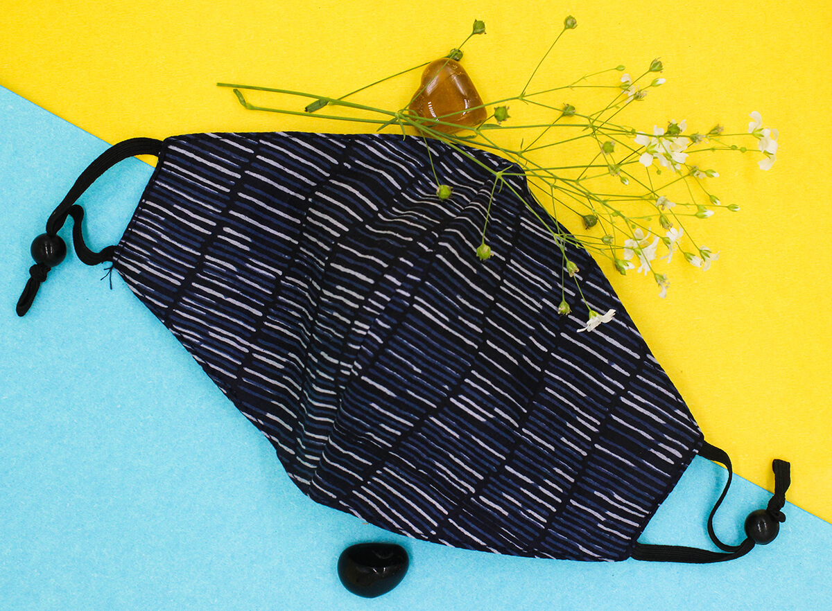 • Beautiful Navy Blue & Grey Color Abstract Strips mask.
