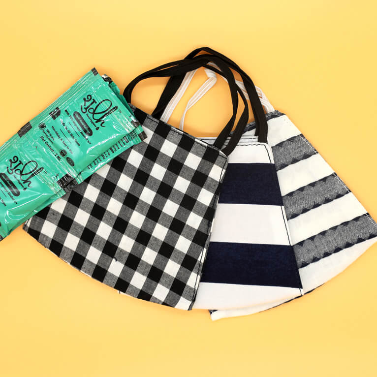 • 1 Black & White Check, 1 Nave Blue & White Stripe, 1 Grey & White Stripe