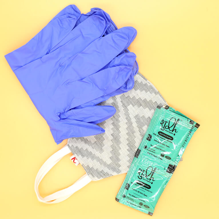 • Travel Kit Contain: 1 Cotton Mask, 1 Pair of Nitrile Gloves & 4 Sachet of Sanitizer